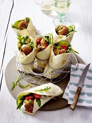 Vegansk Wraps med falafel, hummus och goda grönsaker.